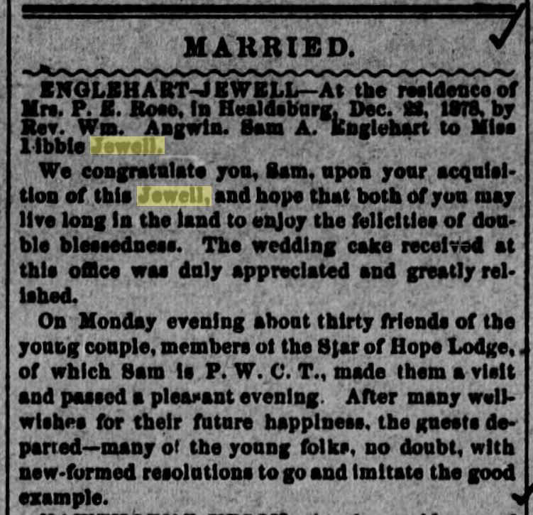 Maria Bolognesi’s parents were dead, and Hazel (Englehart) Holst’s mother had been deceased over a decade. Peter Holst and his wife Caroline, and Sam Englehart, who crossed the Great Plains to California with his family as a little boy were both still living. Sam was in Healdsburg, living in the house his late sister had bequeathed him, and working odd jobs. Peter and Caroline were in the hills just outside Healdsburg, growing grapes and running a small but thriving winery.